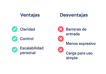 El formato JSON tiene una estructura fácil de leer porque cada apartado se encuentra ordenado en claves "{ }" separadas, lo que facilita crear un "prompt maestro" donde puedas modificar aspectos del prompt sin cambiar la estructura. Algunas desventajas pueden ser el desconocimiento de su uso correcto y su lectura puede requerir un poco de entrenamiento simple.